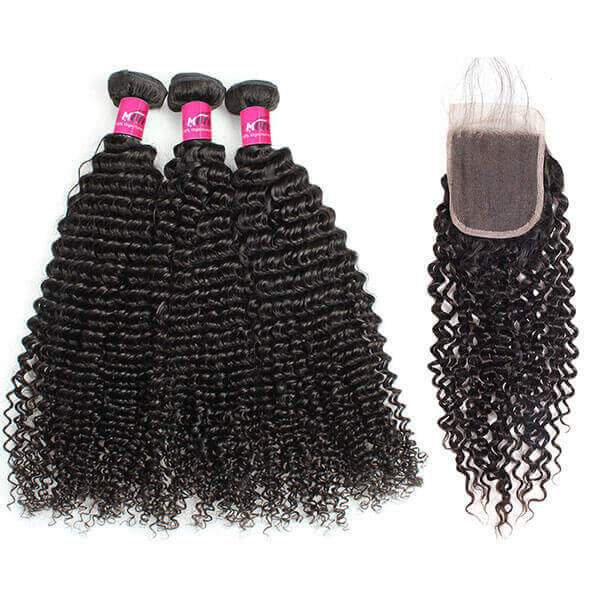 Pack: Curly Hair 3 Bundles with 1 Piece 4*4 Lace Closure
